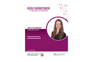Auch das Kompetenzzentrum Frau und Beruf Münsterland ist erneut mit dabei. Am 18. März um 14:30 Uhr dreht sich alles um „Flexible Arbeitszeiten als Wettbewerbsvorteil“. Referentin Judith Freisburger geht in ihrem Vortrag darauf ein, flexible Arbeitszeiten immer häufiger zum entscheidenden Faktor in der Fachkräftesicherung werden. Doch wie lässt sich Flexibilität im Arbeitsalltag wirklich gestalten und wo sind klare Grenzen notwendig?